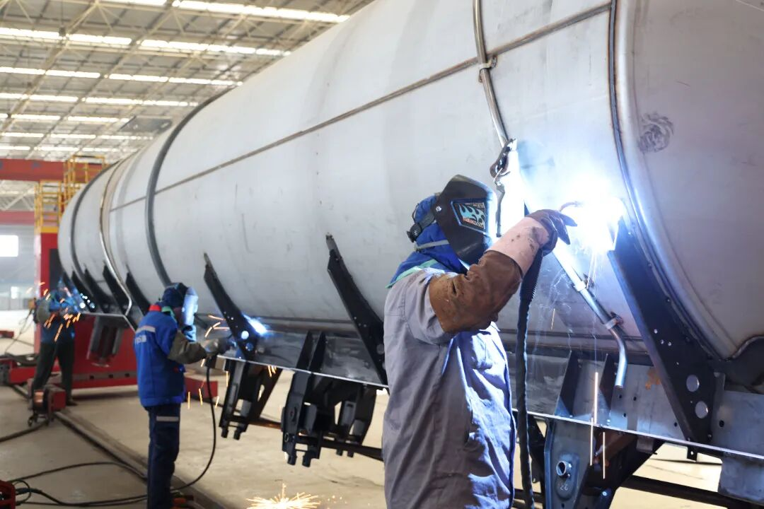 2月24日,位于鄒平市韓店鎮(zhèn)的山東三星機(jī)械制造有限公司生產(chǎn)車(chē)間內(nèi),工人們進(jìn)行焊接作業(yè)。