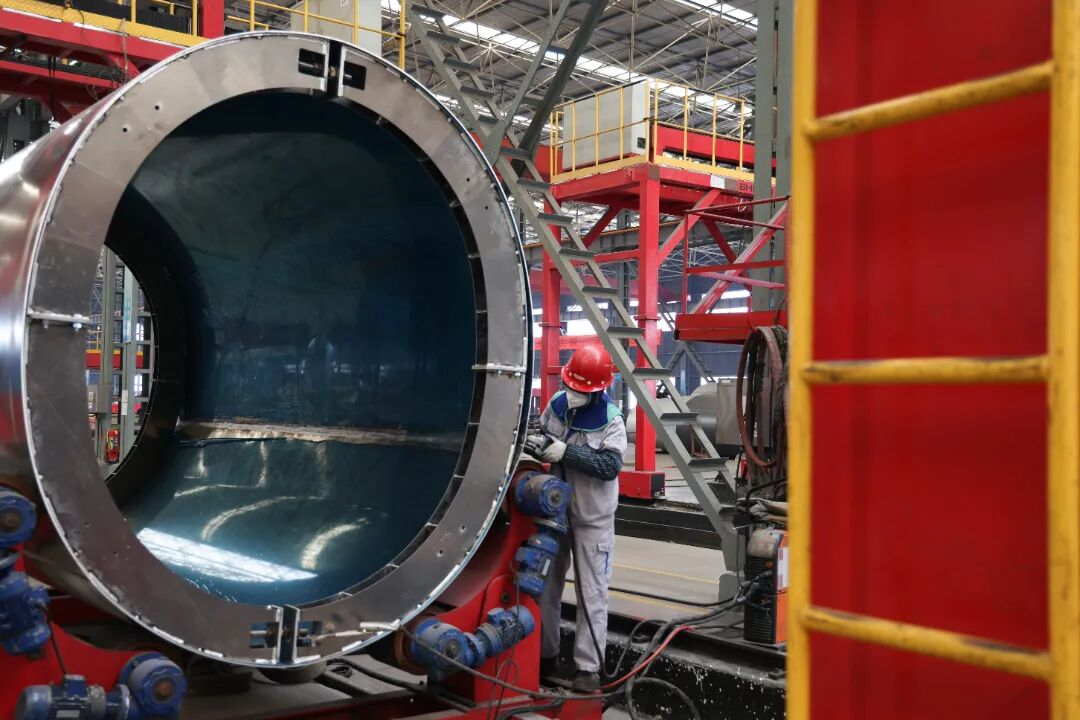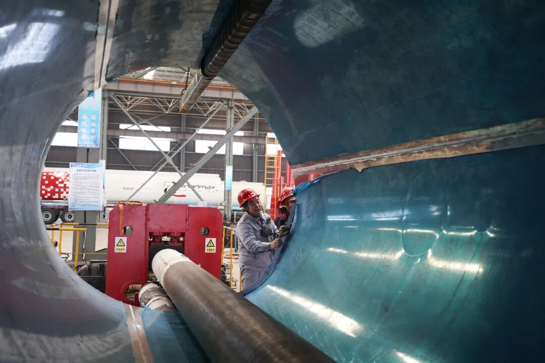 2月24日,位于鄒平市韓店鎮(zhèn)的山東三星機(jī)械制造有限公司生產(chǎn)車(chē)間內(nèi),工人在進(jìn)行卷筒作業(yè)。