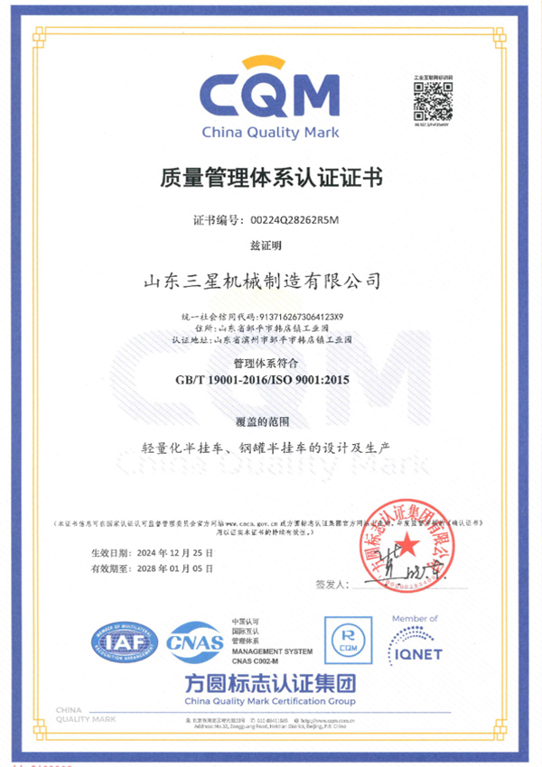 質(zhì)量管理體系認(rèn)證證書