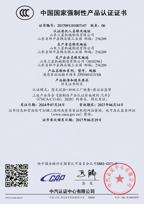 液態(tài)食品運(yùn)輸半掛車